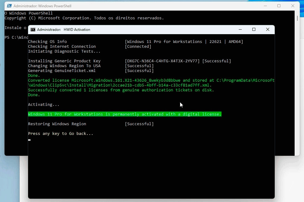 Ativando o Windows 11 Apenas Com Comando No Windows PowerShell