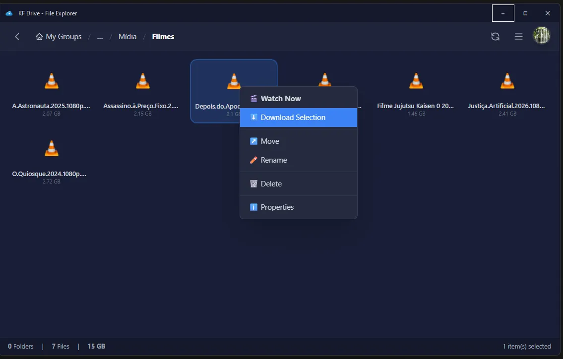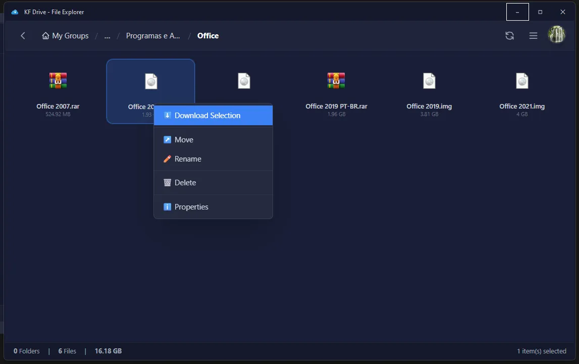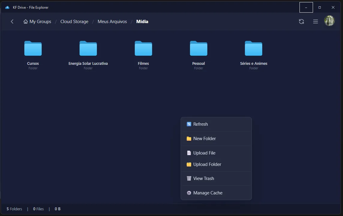 - Caso de Uso Ideal: O KF Drive é altamente recomendado para arquivos básicos como filmes, jogos, programas e backups de projetos públicos. O intuito é armazenar arquivos cuja perda ou vazamento não cause transtornos ao usuário.
